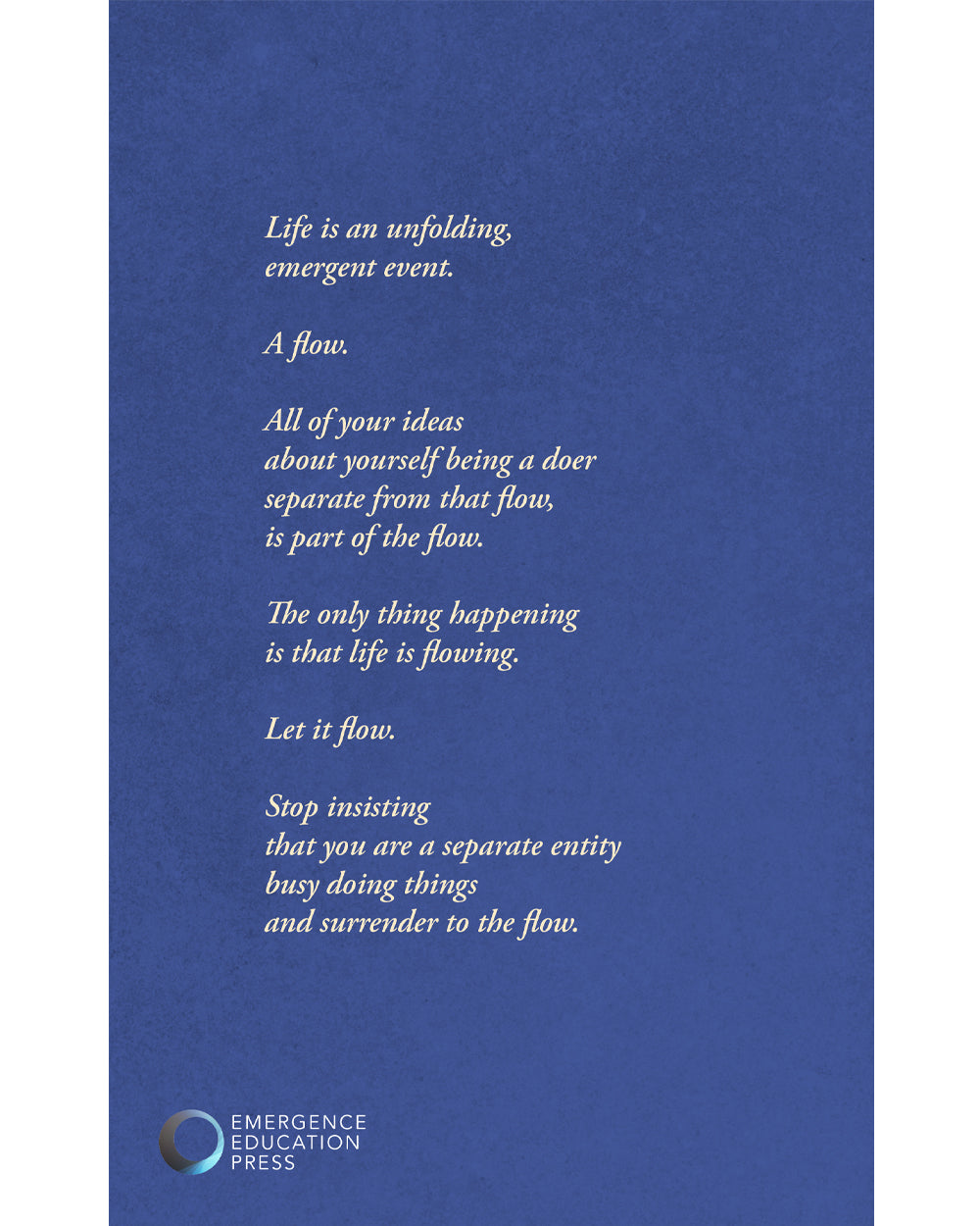 In a culture so conditioned to be busy, relaxation becomes something else to be busy with. We think of ourselves as relaxing, as if we are working towards being relaxed. In this book you will find that meditation is not about relaxing, it is about being relaxed. We must learn how to let go and be relaxed without turning it into something that takes effort.